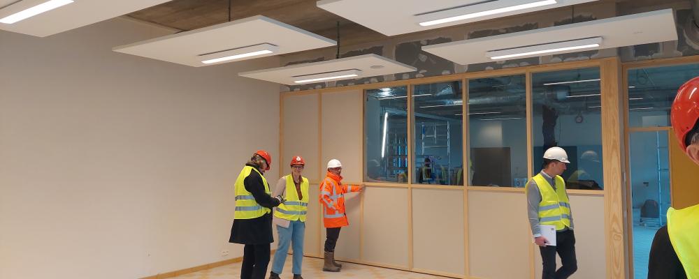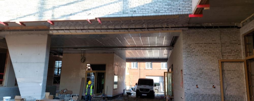 Début de l'organisation de la construction. Première année : égouts, classes de finition, aménagement extérieur. Rénovation : début des murs intérieurs et des techniques.