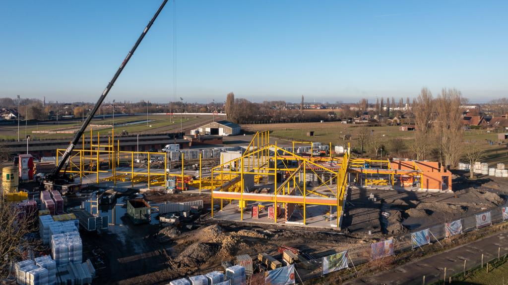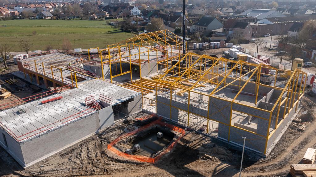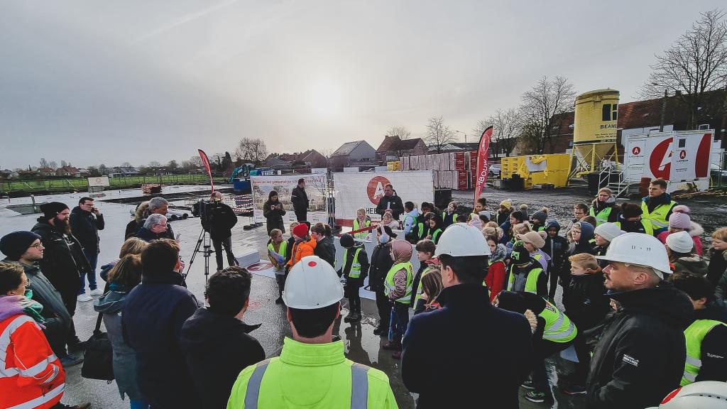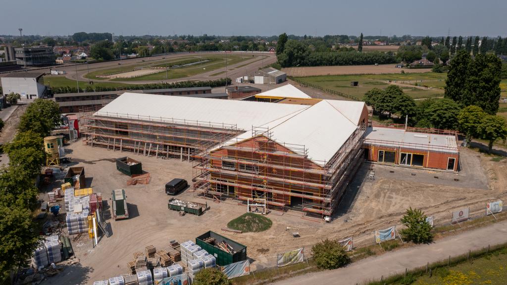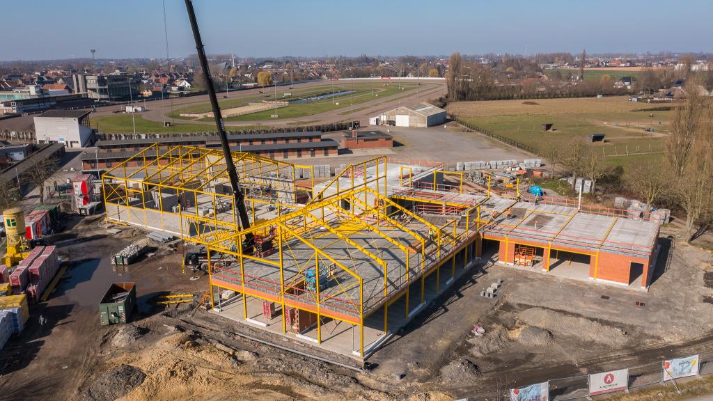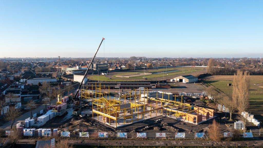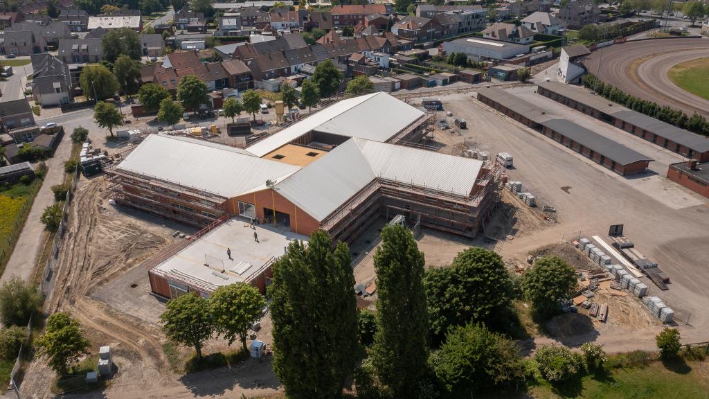 De steentjesparking naast de hippodroom in Kuurne is niet meer. In opdracht van Gemeentebestuur Kuurne heeft Alheembouw (i.s.m. B2Ai architects, Bureau De Fonseca en Stefaan Thiers) een nieuwe hedendaagse basisschool met polyvalente sportzaal gerealiseerd. Basisschool NEST. - een samensmelting van de voormalige scholen Pienter en Wijzer, elk met hun eigen vestiging - is het toonbeeld van een kleinschalige school en warme plek waar een gezellige, familiale sfeer heerst. Het nieuwe schoolgebouw biedt een krachtige leeromgeving voor 300 leerlingen. 120 kleuters krijgen hun onderkomen op het gelijkvloers, 180 kinderen van de lagere school nemen hun intrek op de eerste verdieping.