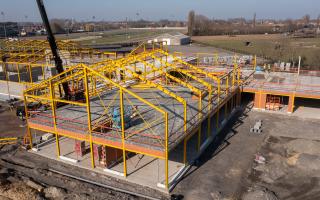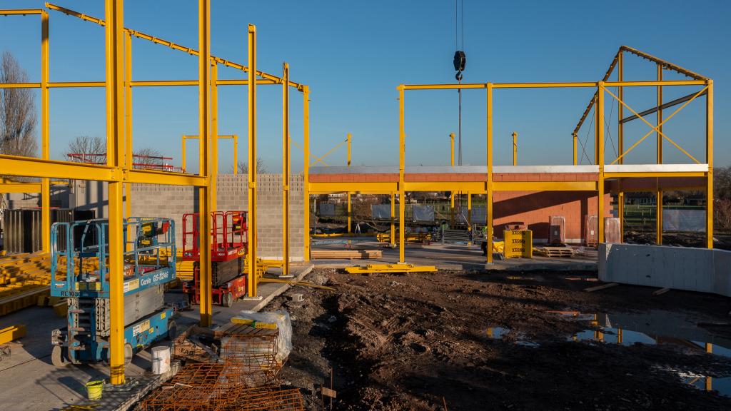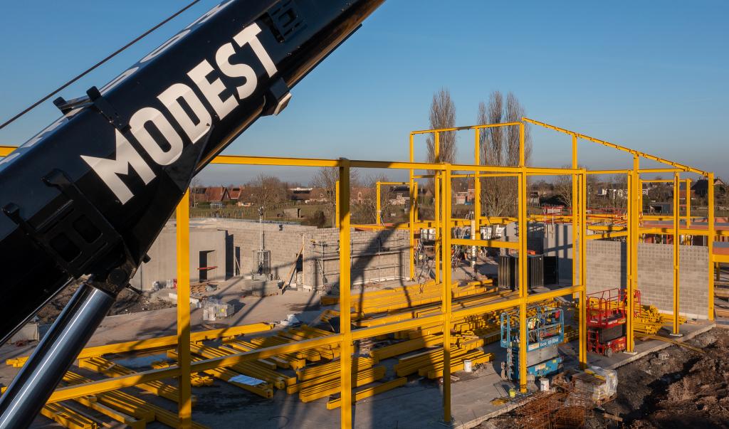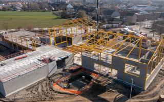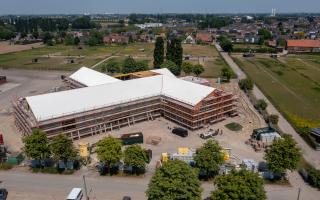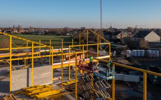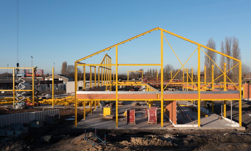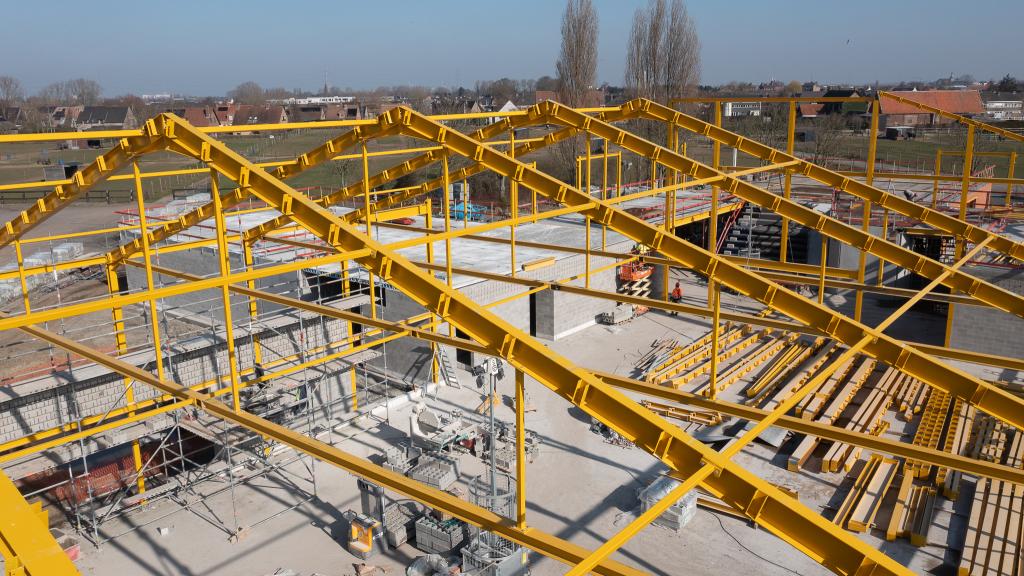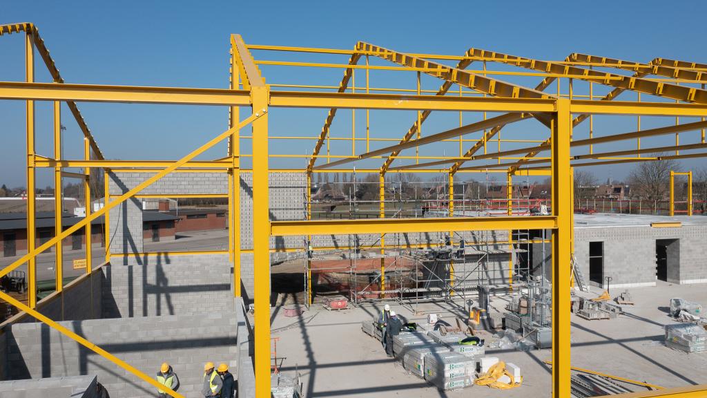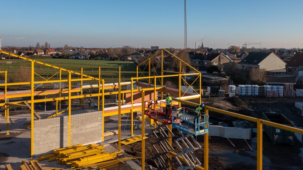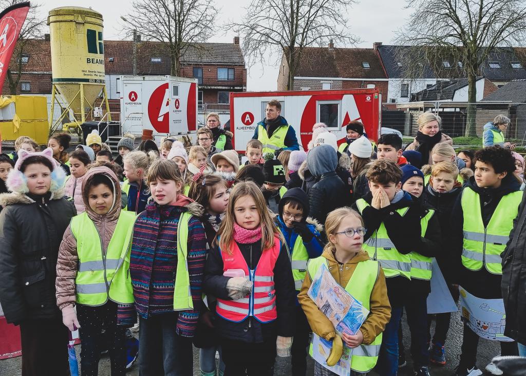 De steentjesparking naast de hippodroom in Kuurne is niet meer. In opdracht van Gemeentebestuur Kuurne heeft Alheembouw (i.s.m. B2Ai architects, Bureau De Fonseca en Stefaan Thiers) een nieuwe hedendaagse basisschool met polyvalente sportzaal gerealiseerd. Basisschool NEST. - een samensmelting van de voormalige scholen Pienter en Wijzer, elk met hun eigen vestiging - is het toonbeeld van een kleinschalige school en warme plek waar een gezellige, familiale sfeer heerst. Het nieuwe schoolgebouw biedt een krachtige leeromgeving voor 300 leerlingen. 120 kleuters krijgen hun onderkomen op het gelijkvloers, 180 kinderen van de lagere school nemen hun intrek op de eerste verdieping.